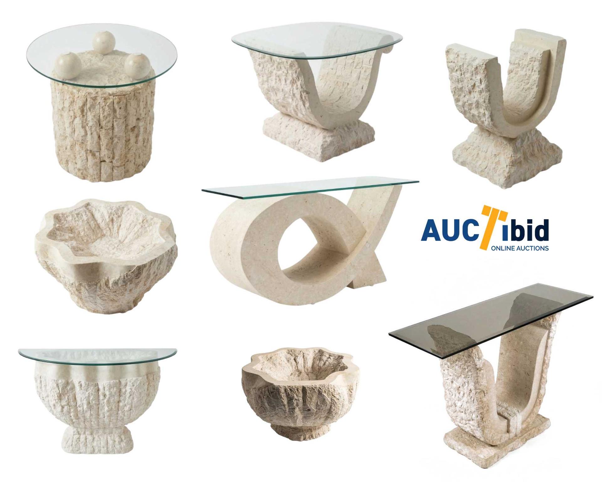 **Partij sculpturaal meubilair: Mactan-steen en kristal**