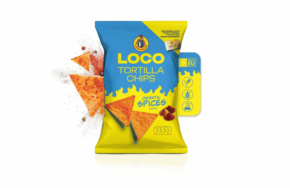 **Partijen hartige snacks: LOCO Tortilla Chips Oriental Spices**