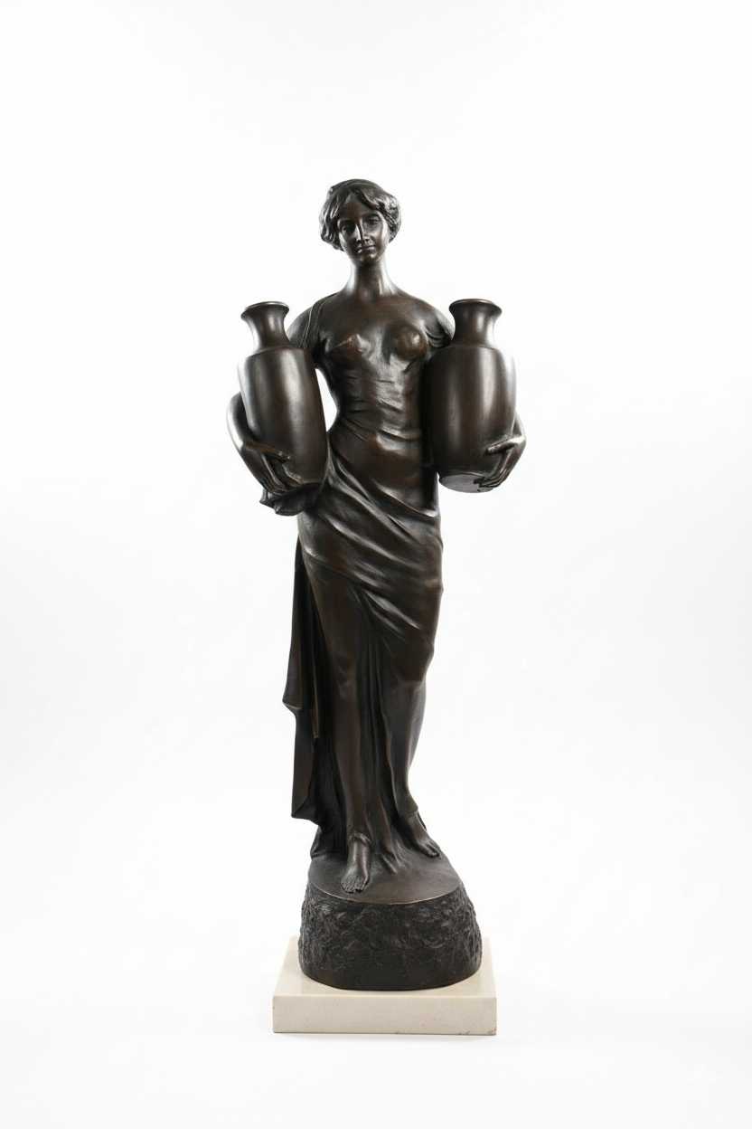 | **UNIEK STUK – “Vrouw met amfora's” – Monumentaal bronzen beeld (70 cm) –