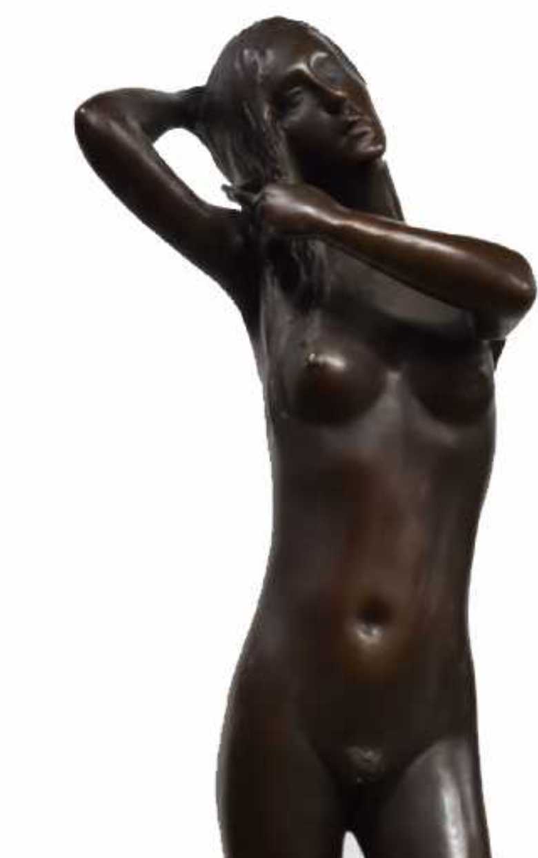 | | **Bronzen sculptuur “Vrouw die haar haar kamt” – Moisés Colomo – Gieterij La Casa Grande – Gesigneerd werk**