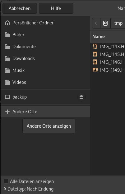 As of now, in GIMP 3.0.4 on Debian 13, the virtual folder "Recent", "Recently accessed", or "Recently used" is not seen in the Open dialog by default. (A screenshot for a German locale is attached; we'd wish for "Zuletzt", "Zuletzt benutzt", "Zuletzt zugegriffen", or similar.)