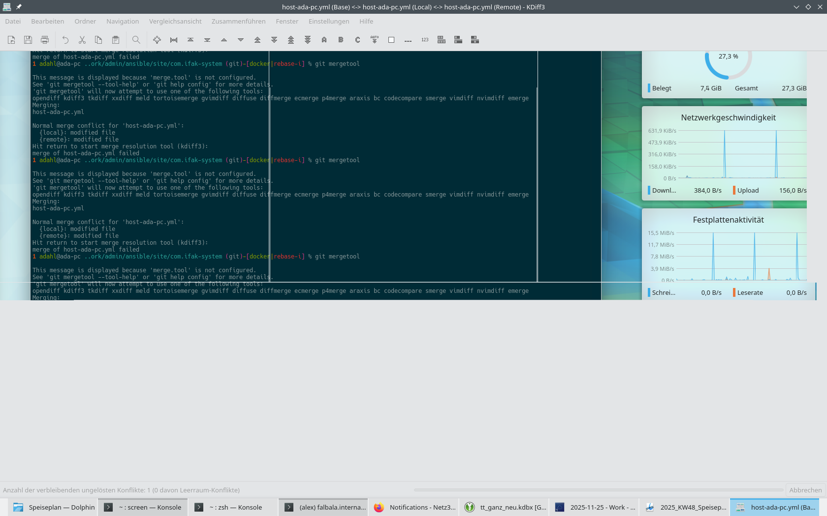 I'm using the combination of `git mergetool` and `kdiff3` on KDE very often,